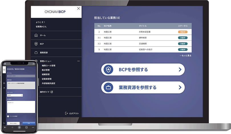 登録したBCP (事業継続計画) をもとに、災害を想定した実践的な訓練・研修を実施することができるサービスです。